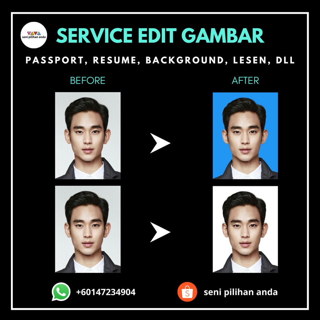Online order + pos courier cuci print gambar passport edit background campur biru & putih *.